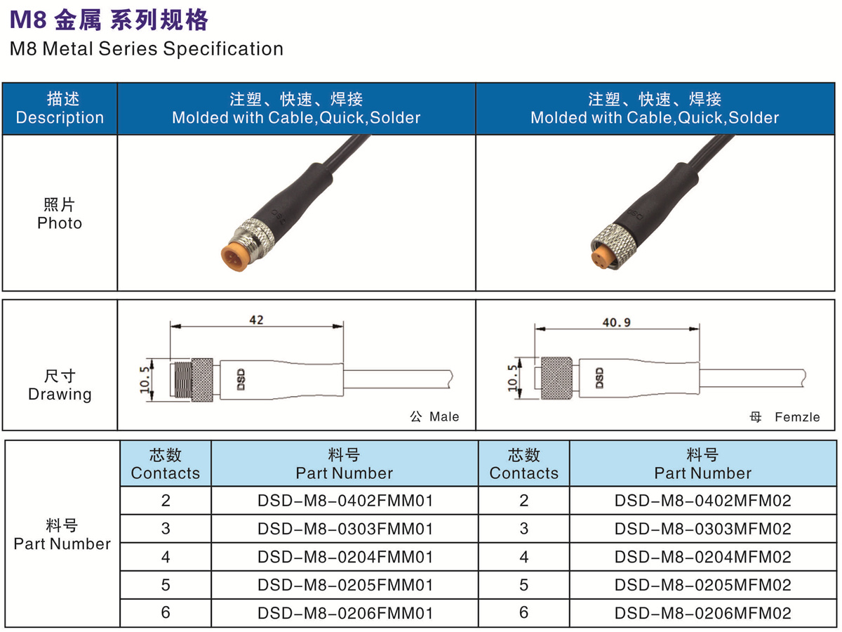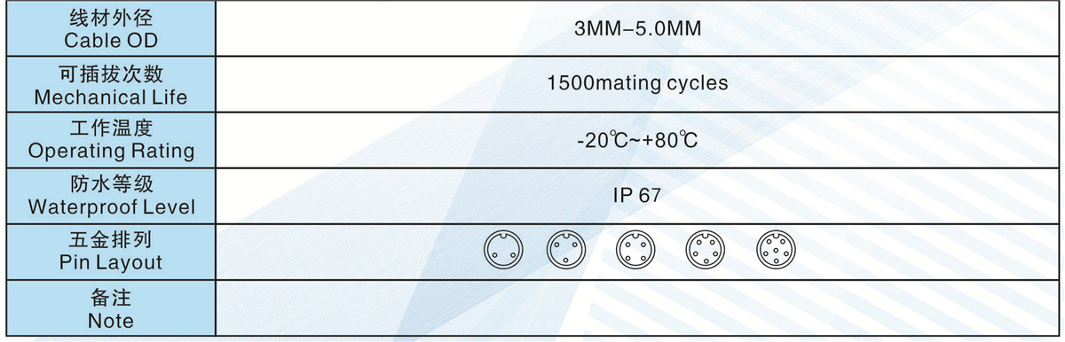 線材匹配(Wire Gague):<=0.5MM2 <=0.3MM2 <=0.2MM2 <=0.2MM2 <=0.2MM2